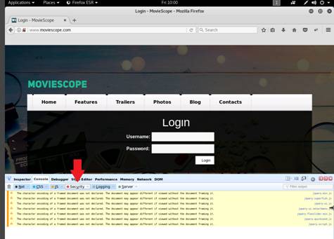 Examine the Security tab under the Console section. Under this tab, Firebug displays all the issues related to the security of the website’s architecture.