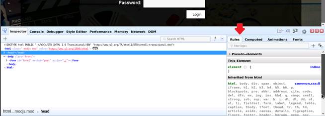 Refer to tabs such as Rules, Computed, Animations and so on in the right pane in order to observe the script used to design the webpage.