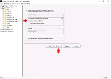 By default, the radio button will be selected for Please adjust connection parameters if necessary, then press FINISH to launch the mirroring operation and check Disconnect when finished option.