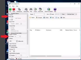 The main window of Path Analyzer Pro appears. In the Standard Options and Advanced Probe Details sections, a few options are set by default.
