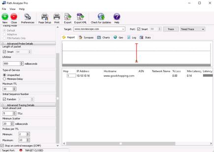 NOTE: Since, this machine itself hosts the website, there won't be any hop recorded by the Path Analyzer Pro.