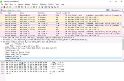 In the command prompt window, type ping (object) –f –l 1500 and press Enter. The response, Packet needs to be fragmented but DF set, means that the frame is too large to be on the network and needs to be fragmented.