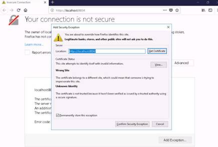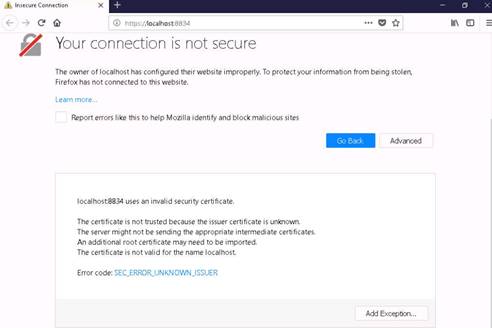 As we are using an https channel to browse, it displays a page stating that This site can’t be reached. As the site does not have a self-signed certificate, it displays a Not Found page. Close the web browser.
