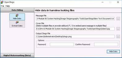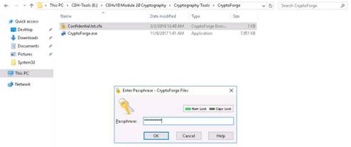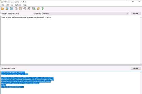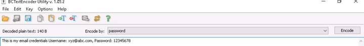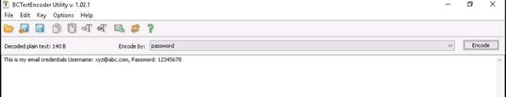 Enter password for encoding text dialog-box appears; enter the password (qwerty@123) in password field, and click OK.