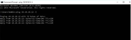 NOTE: To test the maximum fragment size (-f switch sets the Do Not Fragment bit on the ping packet. By default, the ping packet allows fragmentation. the –l option means to send the buffer size.)