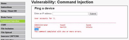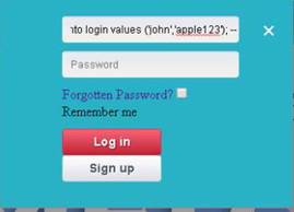 The warning returned in the screenshot states that the password fields are present on an insecure (http://) page.