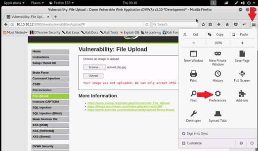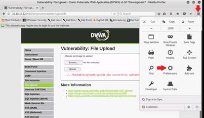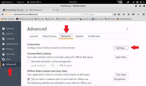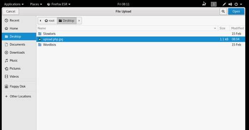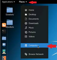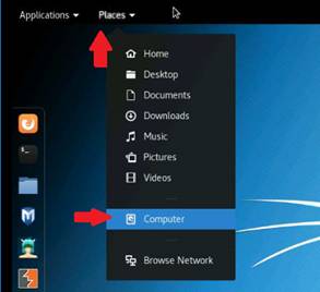 When the Kali Linux desktop appears, click the Firefox browser icon from the favorites bar on the left-side.