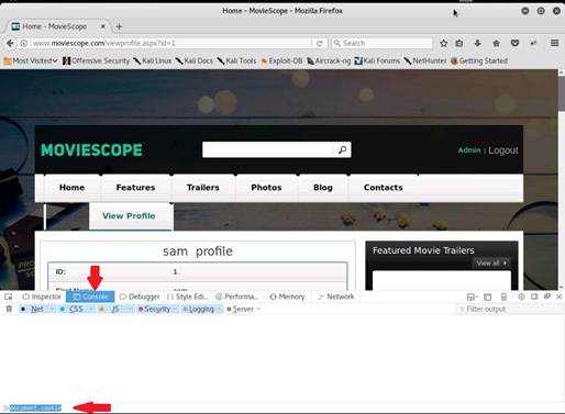 The Firefox browser opens, type www.moviescope.com in the address bar and press Enter to browse the moviescope website.