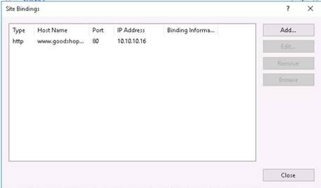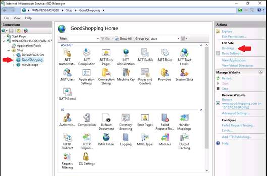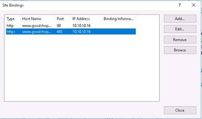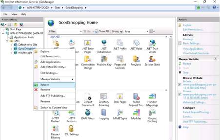 Expand the Sites node, and select Goodshopping in the Connections pane, and click Bindings in the Actions pane.
