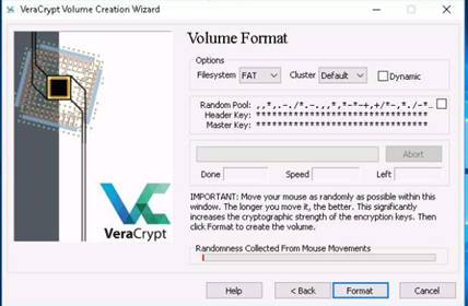 Move your mouse as randomly as possible within the Volume Creation Wizard window for at least 30 seconds. Click Format.