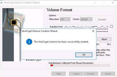 Once the volume is created, a VeraCrypt Volume Creation Wizard dialog-box appears; click OK.
