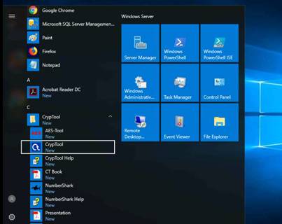 Click Start (lower left corner of the desktop), All Apps, click CrypTool folder to expand and click CrypTool.