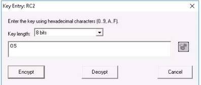 The Key Entry: RC2 dialog-box appears; select Key length (here, 8 bits) from the drop down list